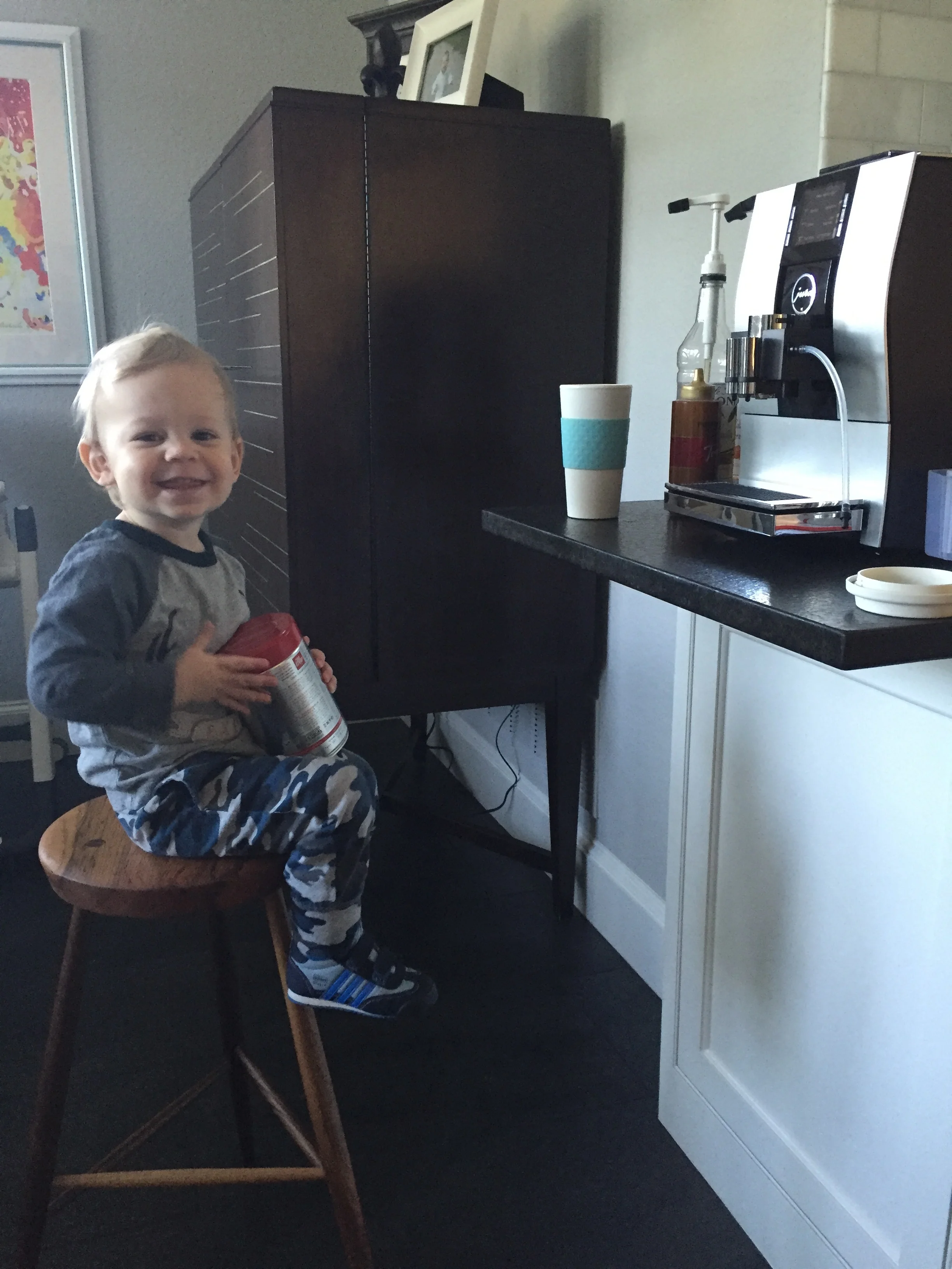 Morning Coffee November 10, 2016 Clive loves helping mom and dad make their morning coffee. He really just like to push the buttons.