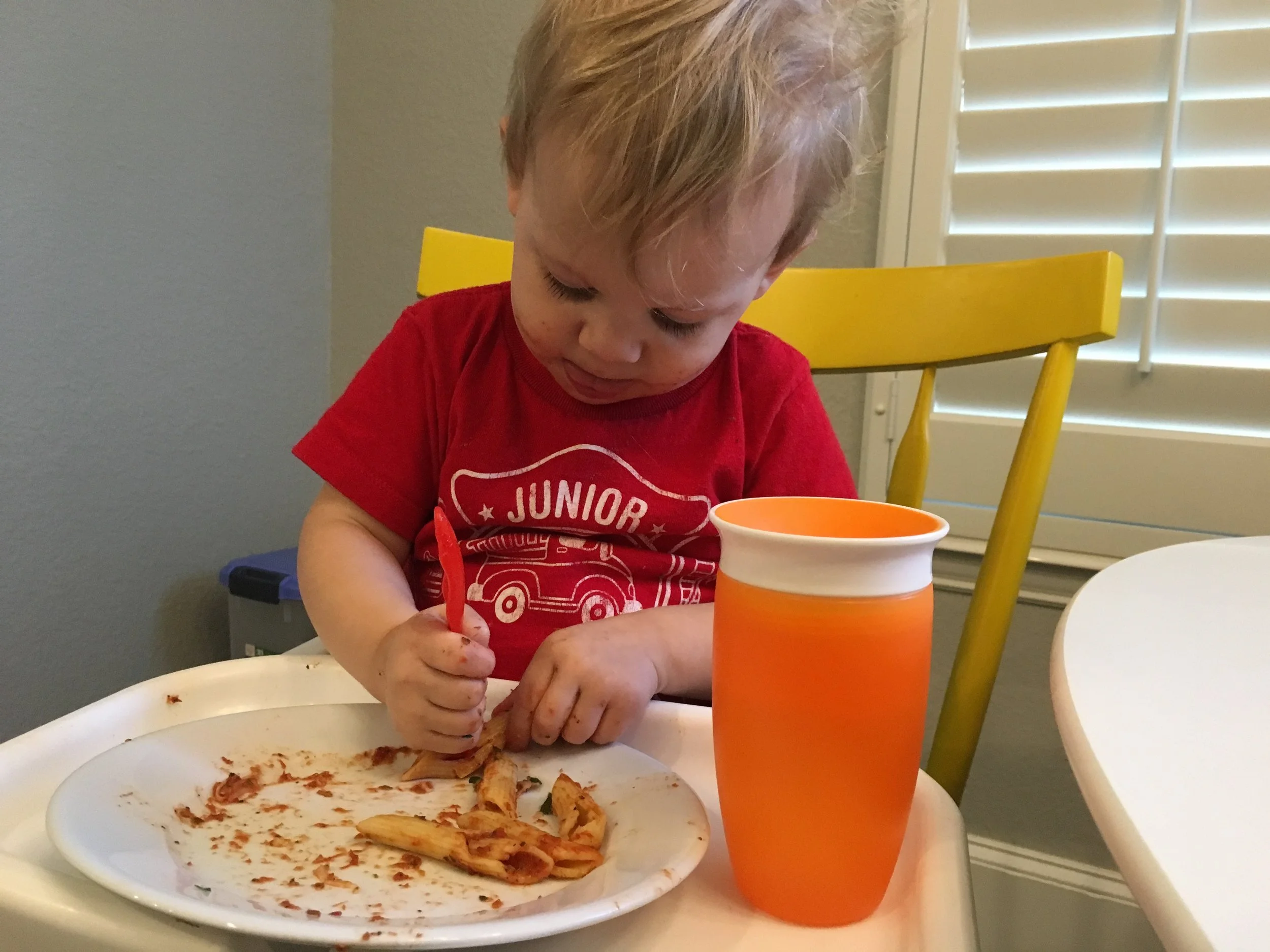 Though we try to limit it, he loves his screen time. "Thomas. Train?!"