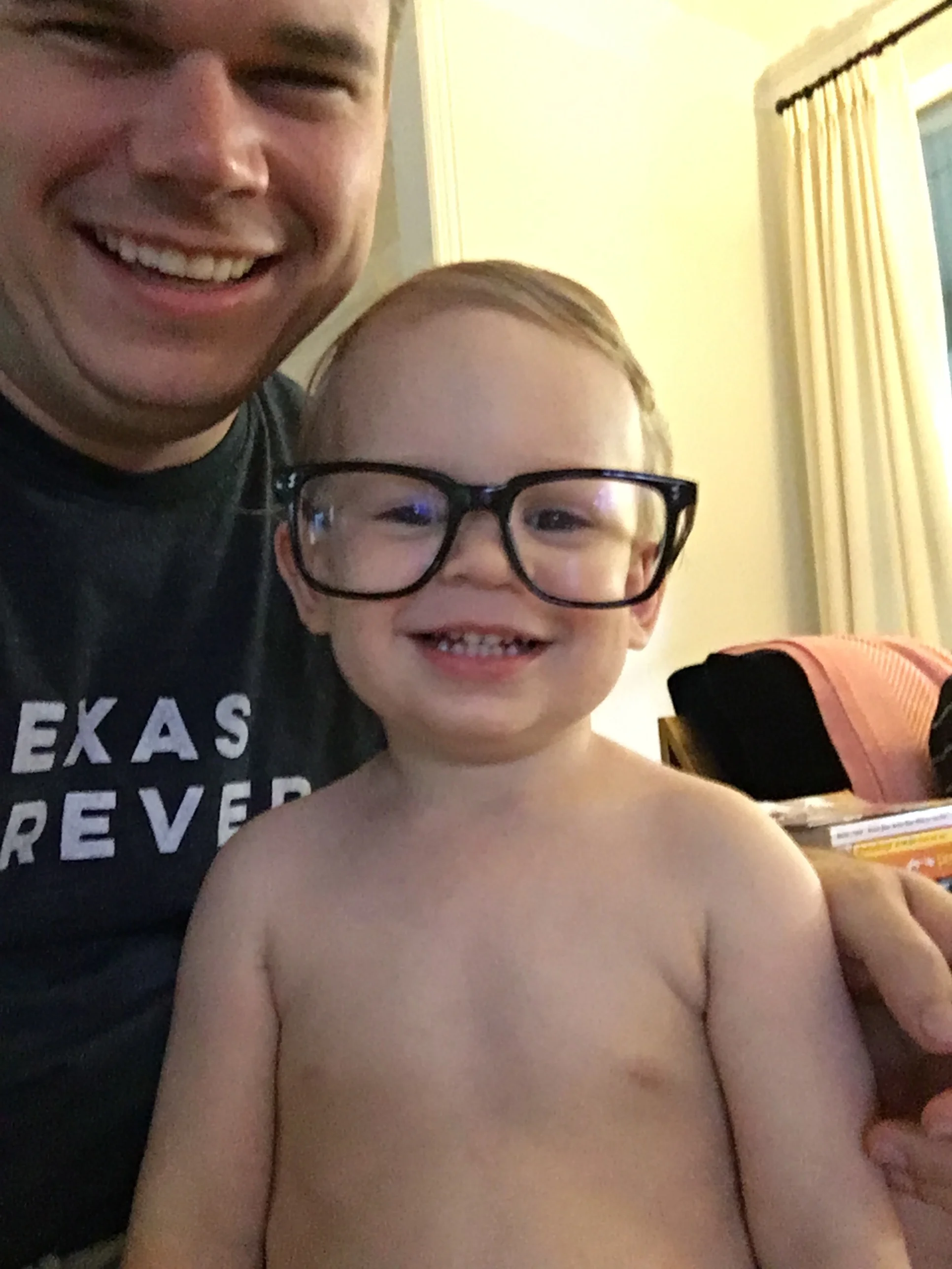 Clive was having a blast wearing mom's glasses and taking selfies with dad.